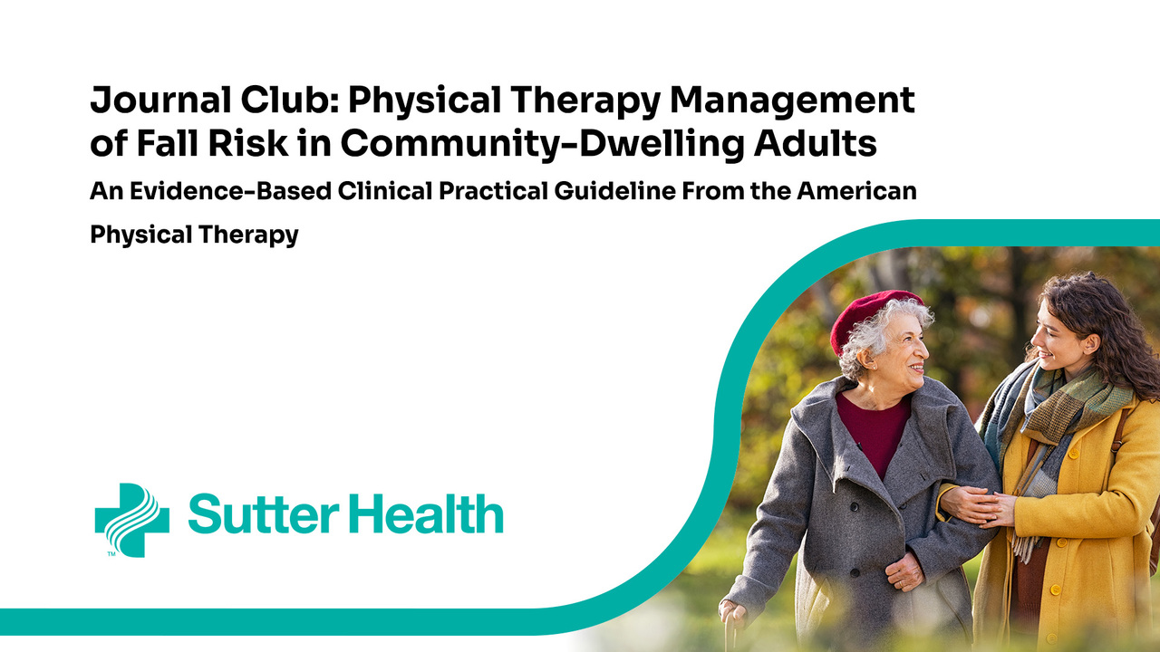 Sutter Rehabilitation Institute presents a virtual learning webinar "2026 Journal Club #1 - Physical Therapy Management of Fall Risk in Community-Dwelling Adults: An Evidence-Based Clinical Practical Guideline From the American Physical Therapy"